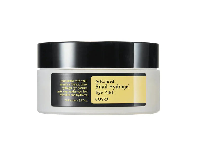 COSRX Advanced Snail Hydrogel Eye Patch es una mascarilla hidratante y reafirmante para los ojos, rica en filtrado de mucina de caracol y niacinamida, para iluminar y reafirmar la piel.